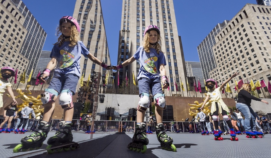 Τη Μεγάλη Παρασκευή των Καθολικών τα παιδιά της Νέας Υόρκης που διασκεδάζουν με το «σκέιτινγκ» την πέρασαν κάνοντας σκέρτσα με τα πατίνια τους: ο χώρος έξω από το Rockefeller Center, όπου στήνεται το κατ’ έθιμον χειμερινό παγοδρόμιο, αποδόθηκε για ανέμελο πατινάρισμα όλον τον χρόνο