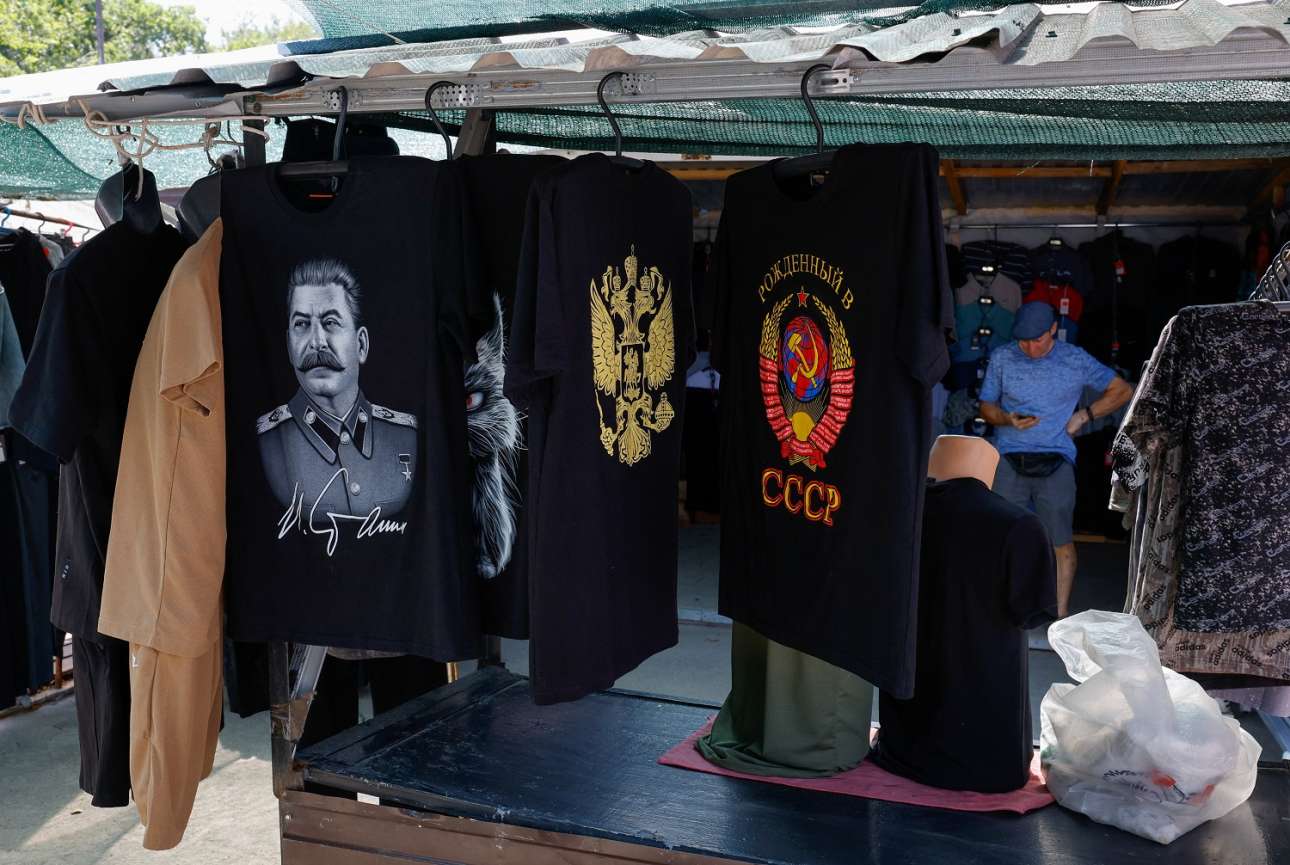 Στο παζάρι της Μαριούπολης, στο Ντονέτσκ, βγήκαν στον πάγκο μπλουζάκια με τον Στάλιν, με τον ρωσικό δικέφαλο αετό και με το σοβιετικό εθνόσημο