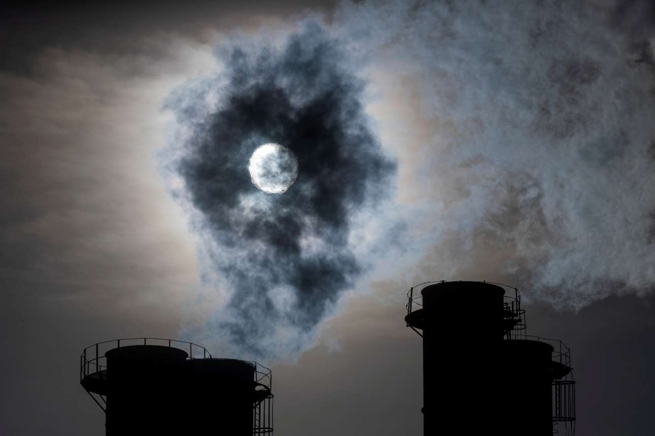 Μόσχα. Για το χατίρι του φακού ο ήλιος προσπαθεί να λάμψει πίσω από τους ατμούς του σταθμού ηλεκτροπαραγωγής – και δεν τα καταφέρνει