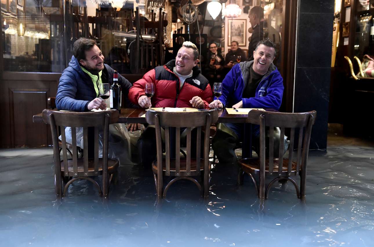 Βενετιά, πλημμυρισμένη. Πινό νέρο, ντόπιο κιόλας, ή μπαρόλο πίνουν τα παλικάρια; Μήπως μπαρμπέρα ή τάχα κιάντι; Διαφημίζουν ή δυσφημούν την οστερία;