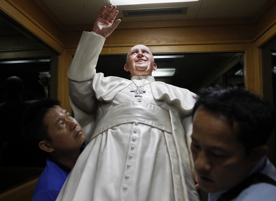 Ταϊλάνδη. Αγαλμα του πάπα Φραγκίσκου μεταφέρεται από εργάτες σε νοσοκομείο – ο ίδιος θα επισκεφθεί την ασιατική χώρα μέσα στον Νοέμβριο