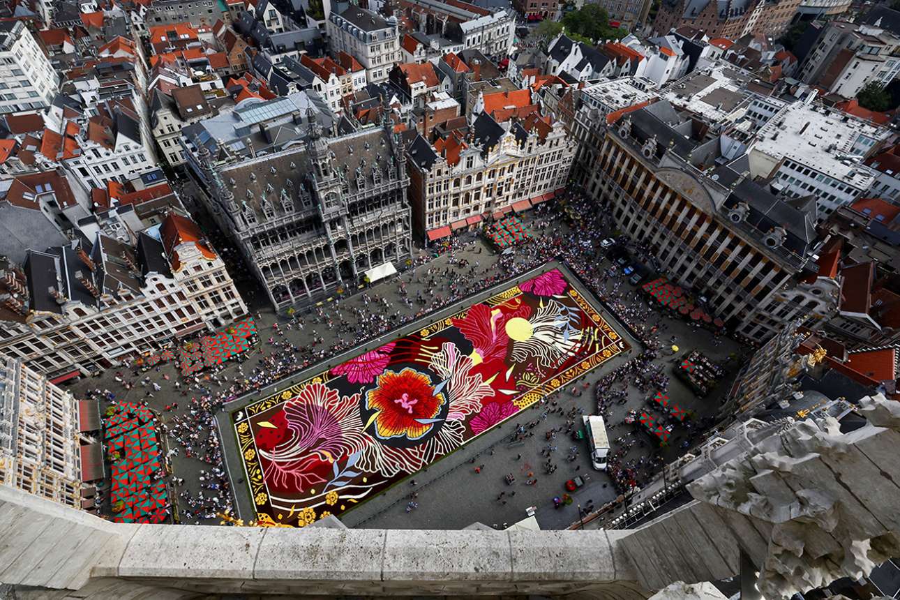 Ενα χαλί λουλουδιών με θέμα «Art Nouveau» 1.680 τ.μ., φτιαγμένο από μια ομάδα περίπου 100 κηπουρών που χρησιμοποίησαν χιλιάδες ντάλιες και μπιγκόνιες, εμφανίστηκε στη Γκραν Πλας των Βρυξελλών