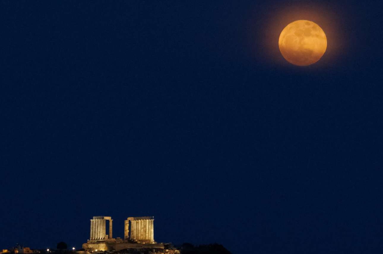 Καλή αρχή… φωτογραφικής σεζόν για τον Ναό του Ποσειδώνα, στο Σούνιο, με την πανσέληνο του Μαΐου στις 12 του μήνα