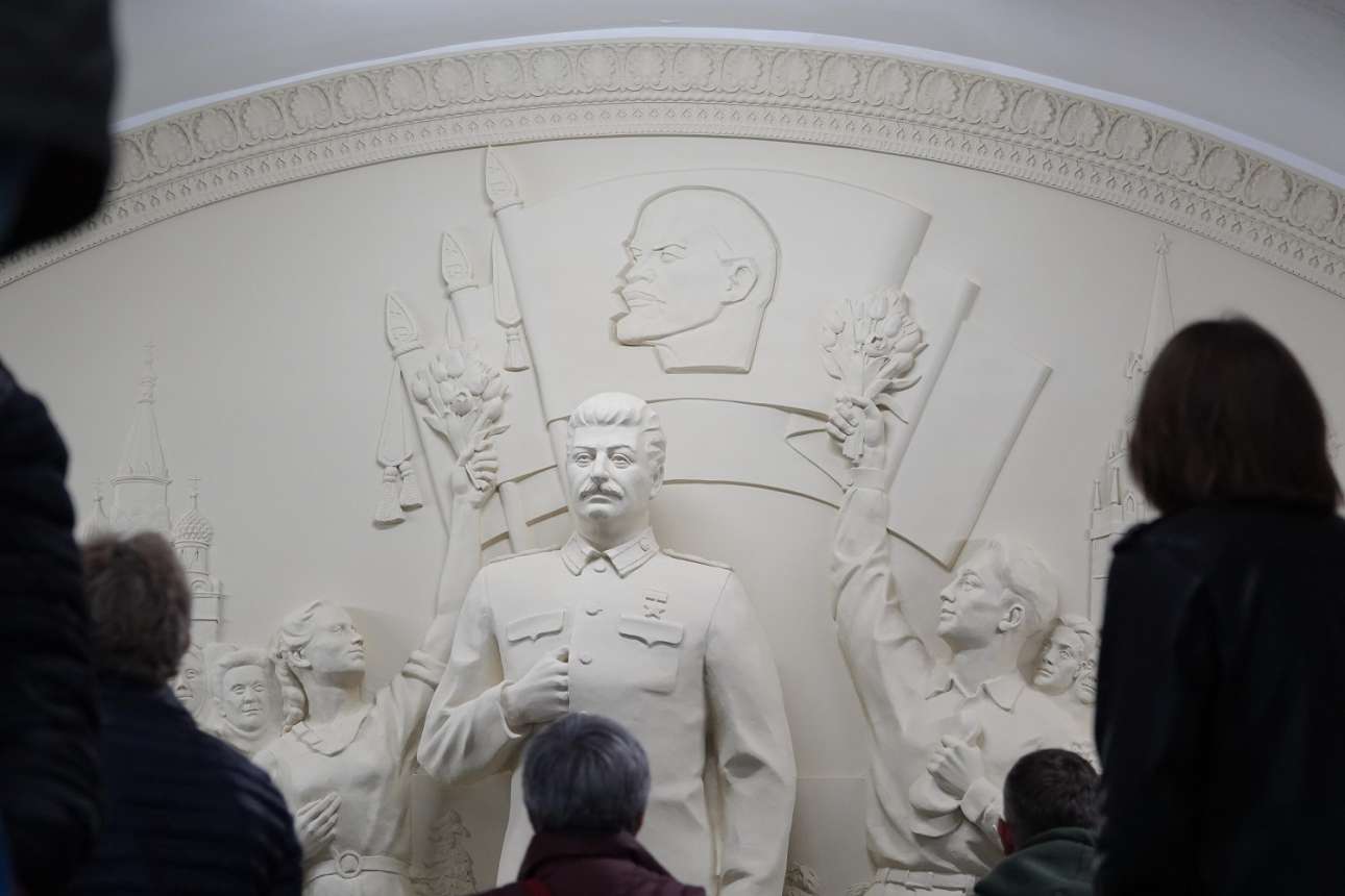 Αντίγραφο καταστραφέντος ιστορικού γλυπτού (Στάλιν, Λένιν, Σταυροί του Αγίου Βασιλείου του σαλού) ξανάπιασε πόστο στο μοσχοβίτικο μετρό