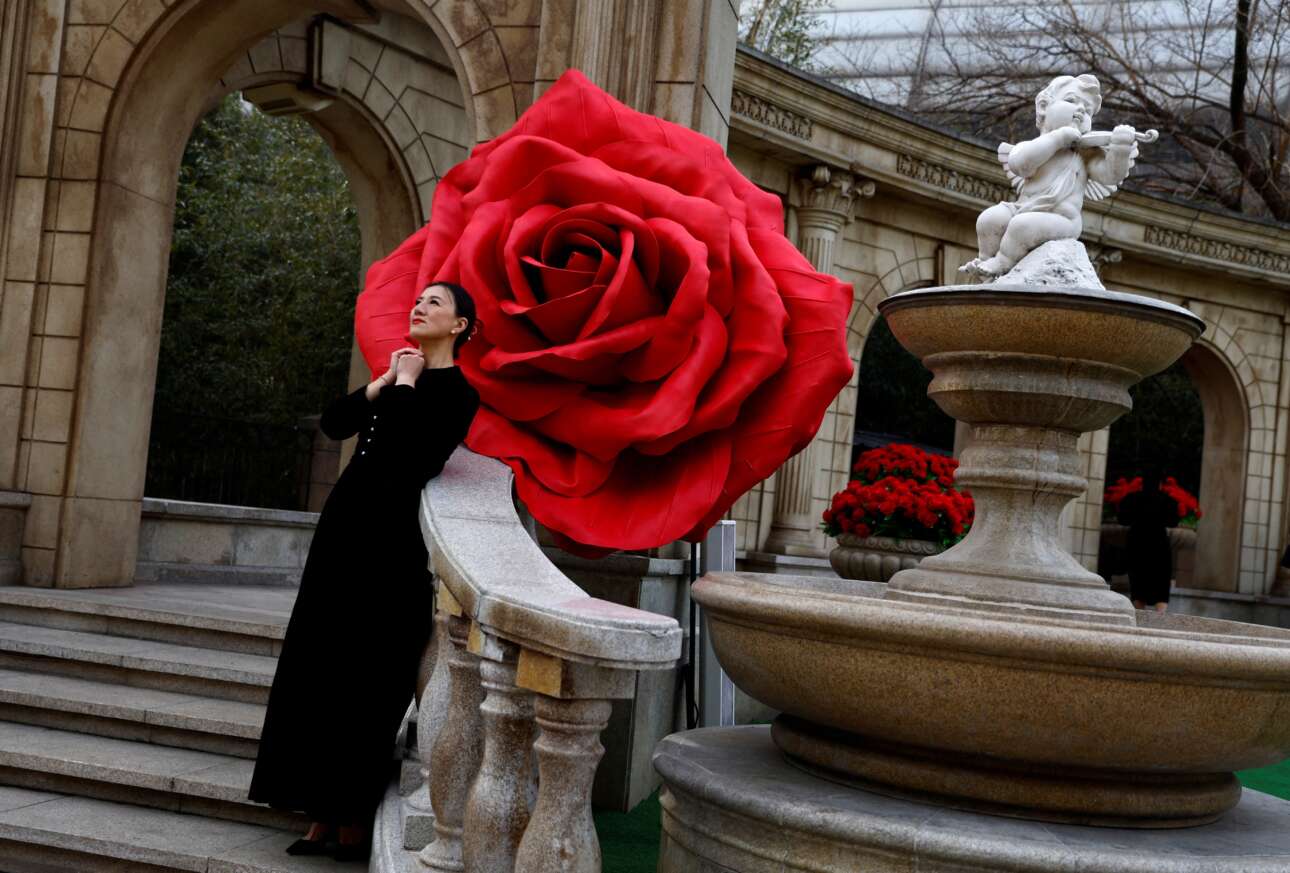 Χάπενινγκ στο Πεκίνο, ειδικά για τον εορτασμό του Αγίου Βαλεντίνου: ο στρουμπουλός Ερως με τα ευρωπαϊκά χαρακτηριστικά παίζει το βιολάκι του στη στέρνα, δίπλα του η καλλονή προσμένει (ή μήπως αναπολεί;) τη μεγάλη αγάπη, ενώ το ρόδο-τέρας την προσεγγίζει από πίσω άλικο, ξαναμμένο και κάπως απειλητικό – επιθετικός ερωτισμός κινεζικού τύπου