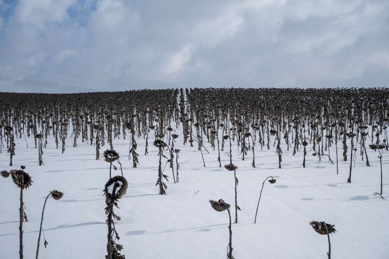 Καρέ από το Ντονέτσκ του Ντονμπάς υπαινίσσεται όχι τον έρωτα και τον θάνατο, αλλά τον πόλεμο και τον θάνατο: δείχνει ένα χωράφι με μαραμένα ηλιοτρόπια, καμένα από το ψύχος και την αναστολή της ζωής στο Μπαχμούτ όπου μαίνονται σφοδρές μάχες – η προοπτική της φωτογραφίας είναι ένας δεύτερος υπαινιγμός, μάλλον για τη διάρκεια του πολέμου σε βάθος χρόνου