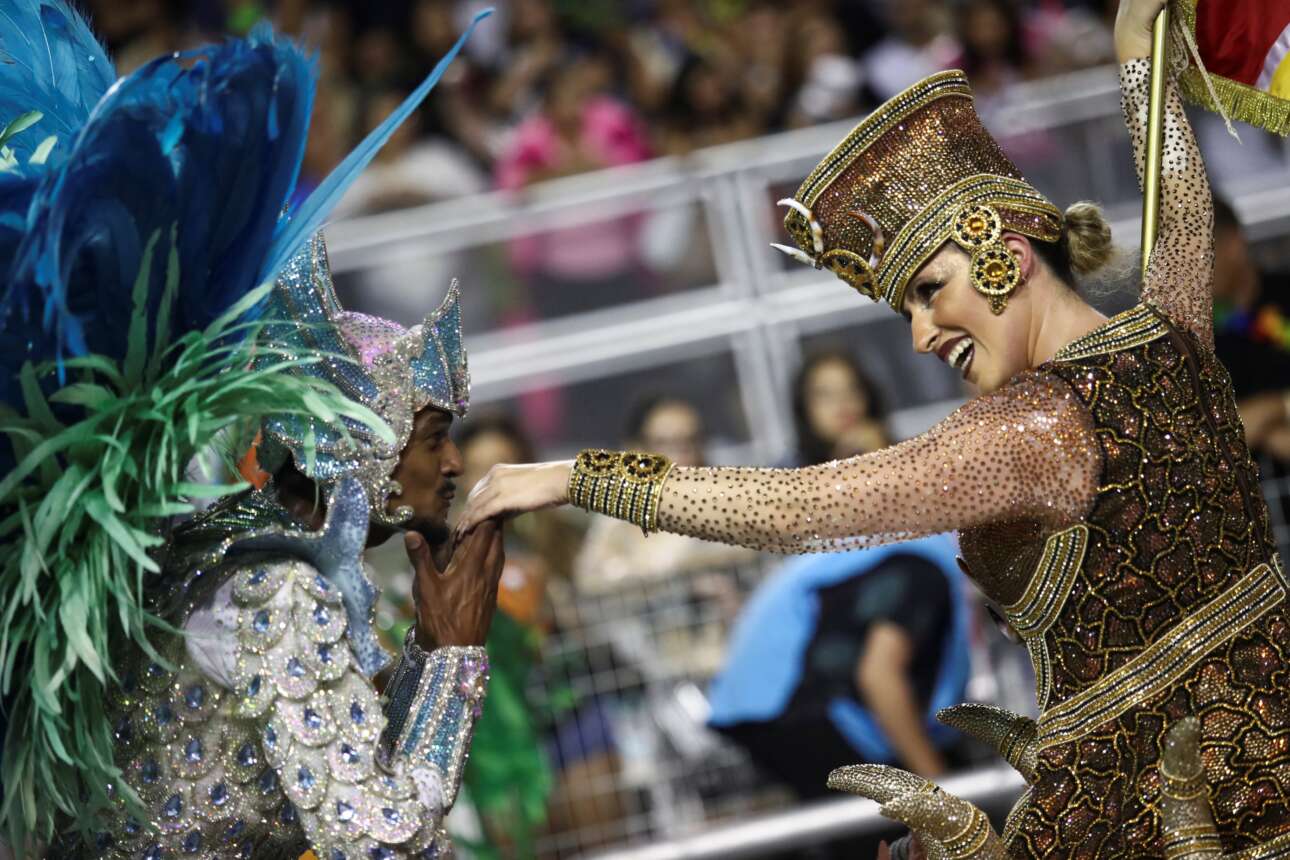 Βραζιλιάνικο εθιμικό κέφι στο «σαμπαδρόμιο» του Σάο Πάολο, από μέλη των «σχολών» σάμπα: πλουμιστές στολές, εκτυφλωτικά χρώματα, φτερά και πούπουλα, λικνίσματα και πόζες – και διασκεδαστική φασαρία που είναι αδύνατον να καταγράψει ο φακός, σε αντίθεση με τη μίμηση(;) του φλερτ