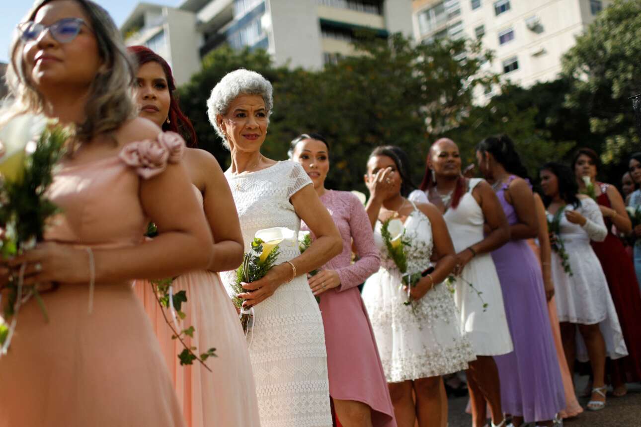 Στιγμιότυπο από τη μαζική και τελετουργική άφιξη των νυφών στην πλατεία του Καράκας όπου τελέσθηκαν γάμοι ανήμερα του Αγίου Βαλεντίνου: «Νo se puede vivir sin amar» βοούν και οι πέτρες σε όλη τη Βενεζουέλα και στα πέριξ εύφορα χώματα με τους ζεστούς ανθρώπους, τουτέστιν «δεν μπορείς να ζεις χωρίς αγάπη» – ψέματα;