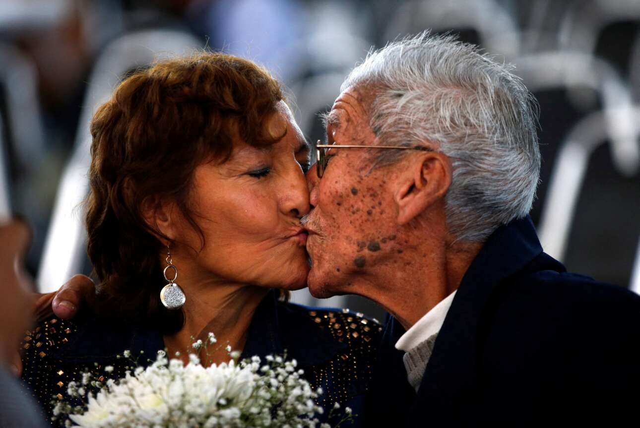 «Ωρη εράν, ώρη δε γαμείν, ώρη δε πεπαύσθαι» λέει ο αρχαίος στίχος της «Παλατινής», δηλαδή «καιρός ν’ αγαπήσεις, καιρός να παντρευτείς, καιρός να πάψεις και να ξαποστάσεις», όπως τον απέδωσε ο αείμνηστος Ανδρέας Λεντάκης – οι εικονιζόμενοι Μεξικανοί, πάντως, είναι νεόνυμφοι και απολαμβάνουν το γαμήλιο φιλί τους: η κυρία είναι 66 ετών και ο κύριος 86 ετών