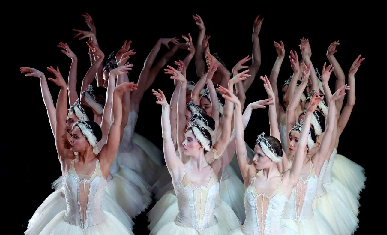 Μπαλαρίνες του Birmingham Royal Ballet στροβιλίζονται στις ρομαντικές όχθες της «Λίμνης των Κύκνων», αν και η θεία μουσική παραμένει του Πιότρ Ιλιτς Τσαϊκόφσκι – στιγμιότυπο από παράσταση που δόθηκε στο Empire Theatre του Σάντερλαντ, στη βορειοανατολική Αγγλία, παρά την πολεμική ατμόσφαιρα που επικρατεί στις σχέσεις Βρετανίας-Ρωσίας