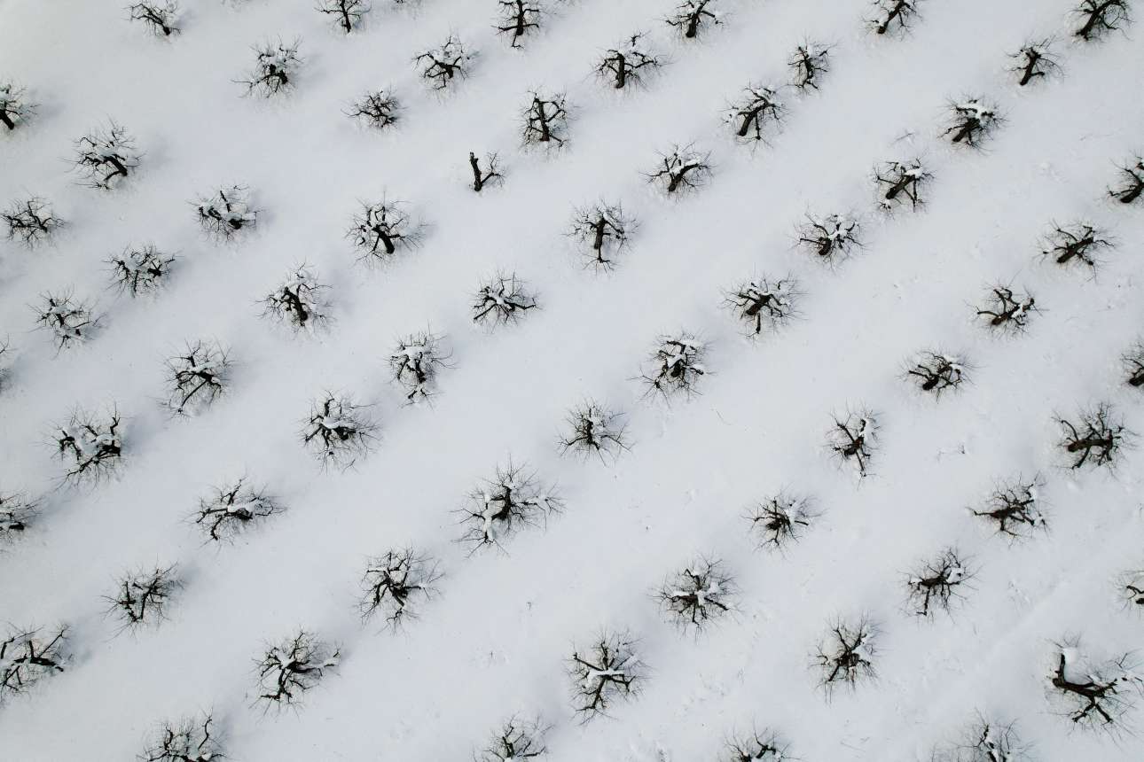 «Ζωγραφιά» για ένα σύγχρονο παραμύθι από τη Μασαχουσέτη: αν και κάποιος απόγονος του Γιαννάκη του Μηλοσποριά εργάστηκε σκληρά για να θεριέψουν οι μηλιές, η καταιγίδα που ήρθε από τα βορειοανατολικά τις πάγωσε και σκέπασε ολόκληρο το χωράφι με χιόνι