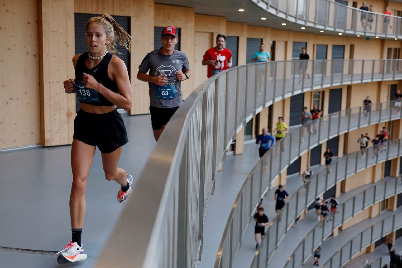 Δρομείς... ορόφων έτρεξαν σε κεκλιμένη ράμπα, μήκους 2,8 χιλιομέτρων, εντός κυλινδρικού πανεπιστημιακού κτιρίου της Λωζάννης