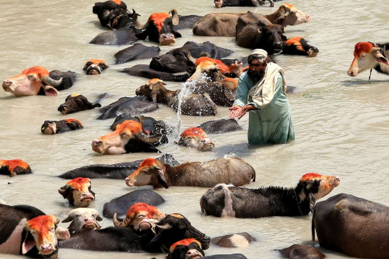 To πέρασμα του ποταμού τρομάζει τα γελάδια, έτσι ο πακιστανός βοσκός βούτηξε στο θολό νερό για να τα σαλαγήσει