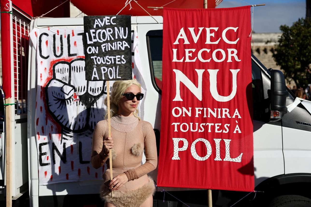 Ωραίο το γουνάκι, γλαφυρό και το πλακάτ της γαλλίδας διαδηλώτριας: «Με τον Λεκορνί όλοι θα καταλήξουμε γυμνοί»