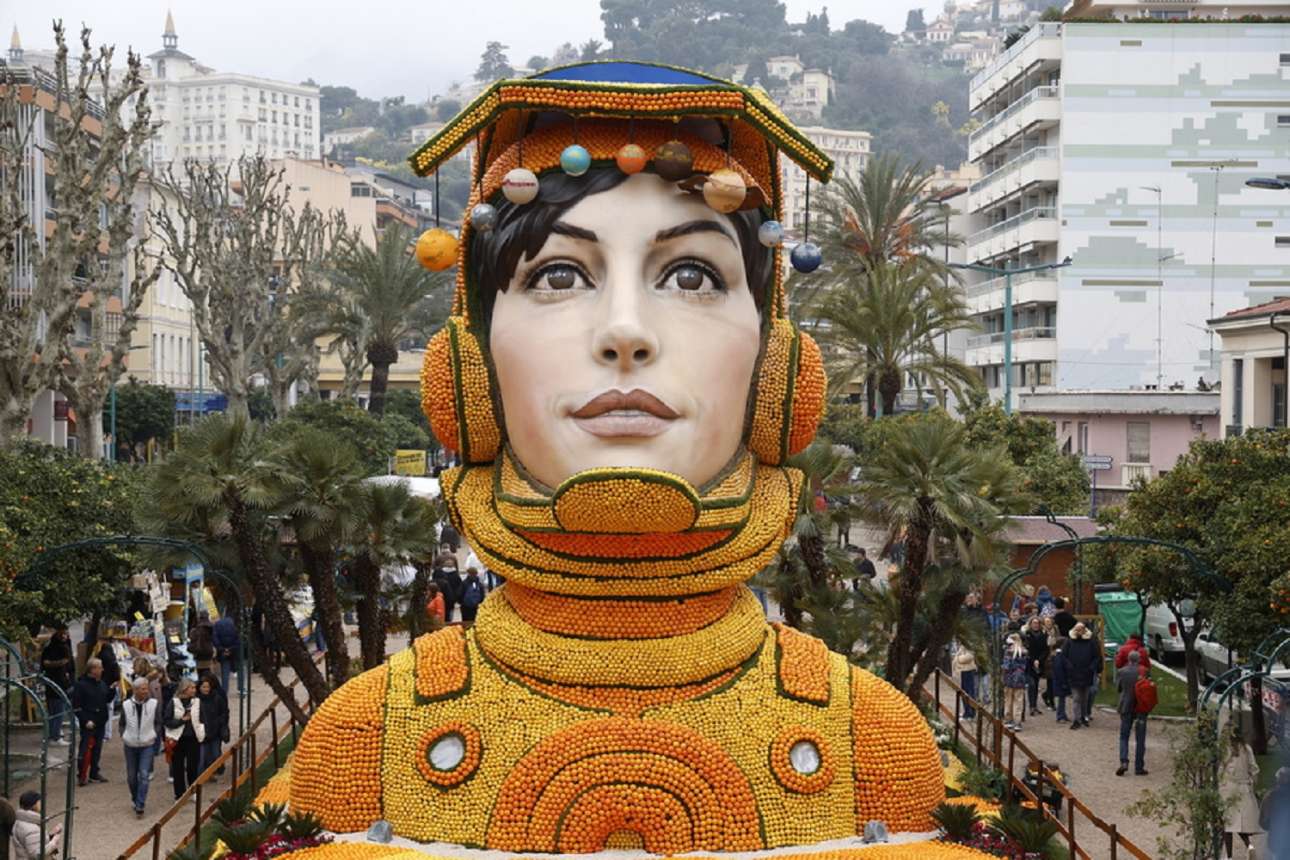 «Διαστημικό» γλυπτό από λεμόνια και πορτοκάλια παρουσιάστηκε στη γαλλική πόλη Μεντόν που φημίζεται για τη φρουτοπαραγωγή της