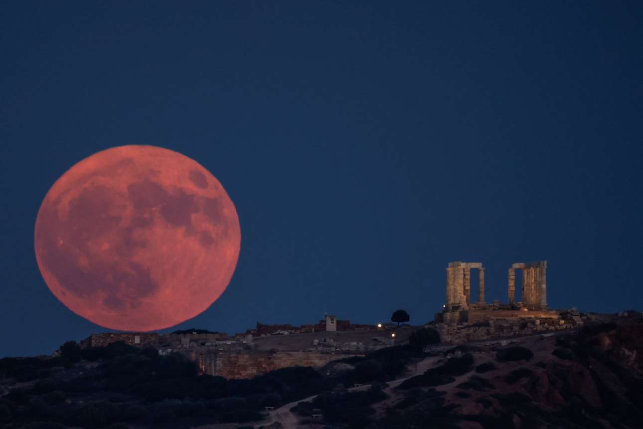 Κατά το σούρουπο της 19ης Αυγούστου η πανσέληνος άναψε τα νερά της Μακρονήσου, προσκύνησε και απέναντι, στον Ναό του Ποσειδώνος – το κλασικό καρέ από το Σούνιο