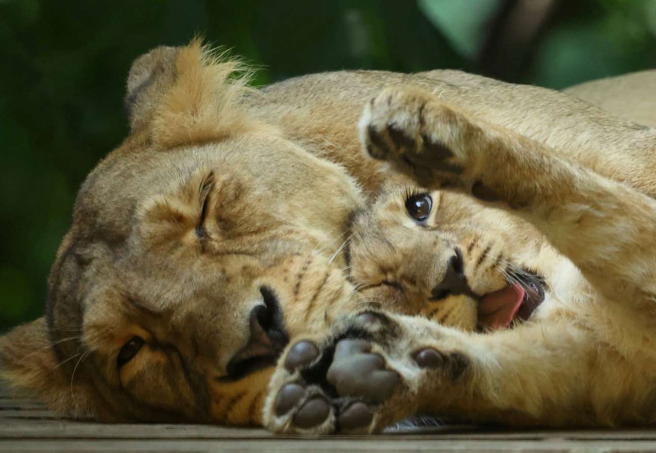 Τρία λιονταράκια γέννησε στο Λονδίνο και πλέον λαγοκοιμάται με το δεξί της μάτι ορθάνοιχτο – μας κιαλάρει η λέαινα, αφού από ζούγκλα ξέρει
