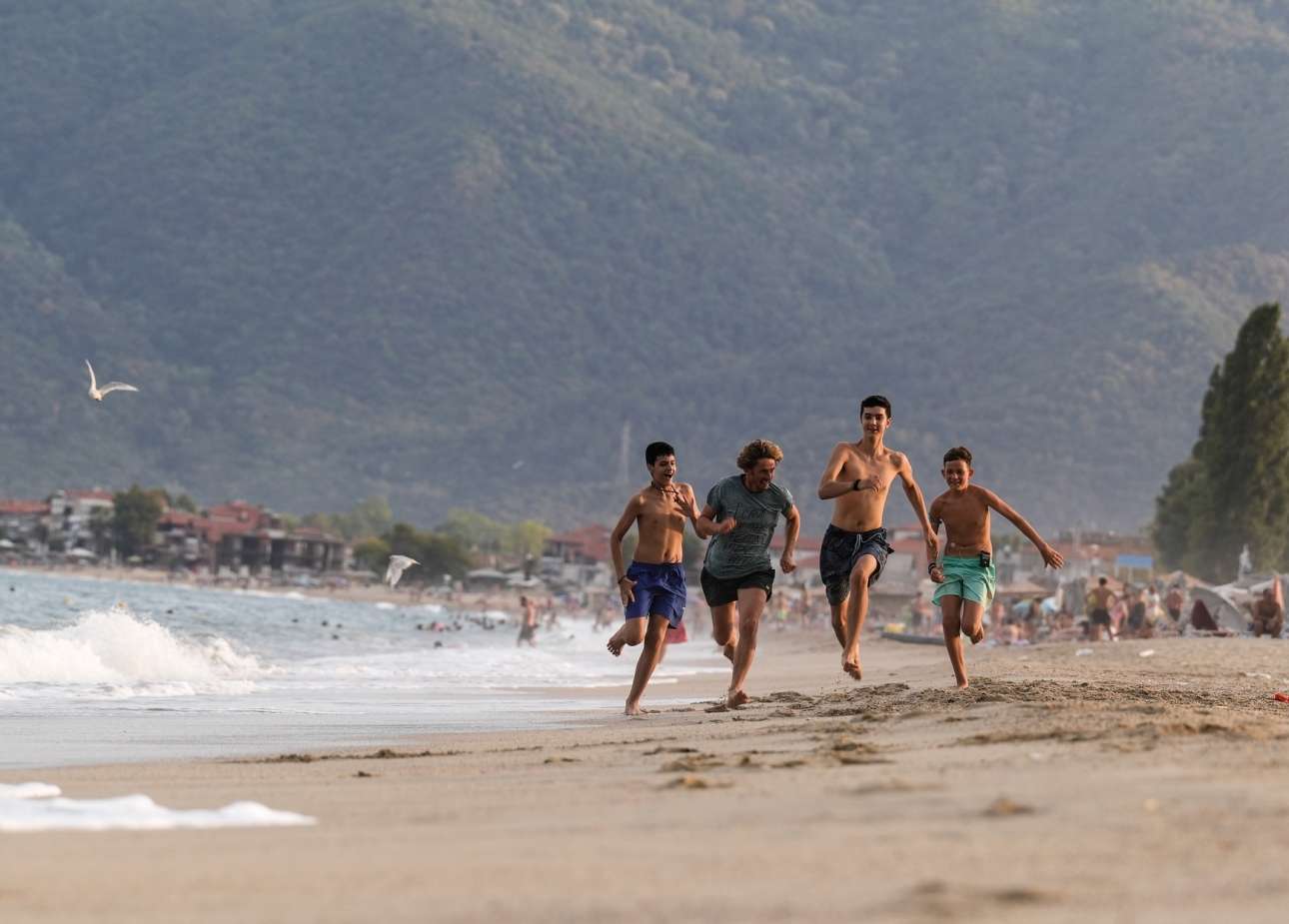 Αγόρια της Θεσσαλονίκης τρέχουν ακάθεκτα να συναντήσουν τα επόμενα ξέγνοιαστα καλοκαίρια τους – καρέ χαράς από την παραλία στα Νέα Βρασνά, κοντά στη λίμνη Βόλβη