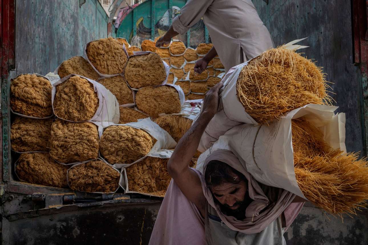 Χαμαλίκι μάλλον άβολο, αφού ο πακιστανός εργάτης κουβάλησε… δεμάτια από τα ψιλά ζυμαρικά που στην Ελλάδα αποκαλούμε φιδέ