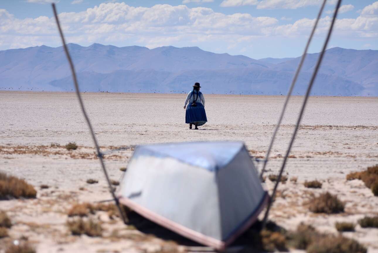 Βολιβία. Η βάρκα έχασε τη λίμνη της που αποστραγγίστηκε για αρδευτικούς λόγους – και η ινδιάνα αγρότισσα κάνει μια βόλτα σε ό,τι υπήρξε βυθός
