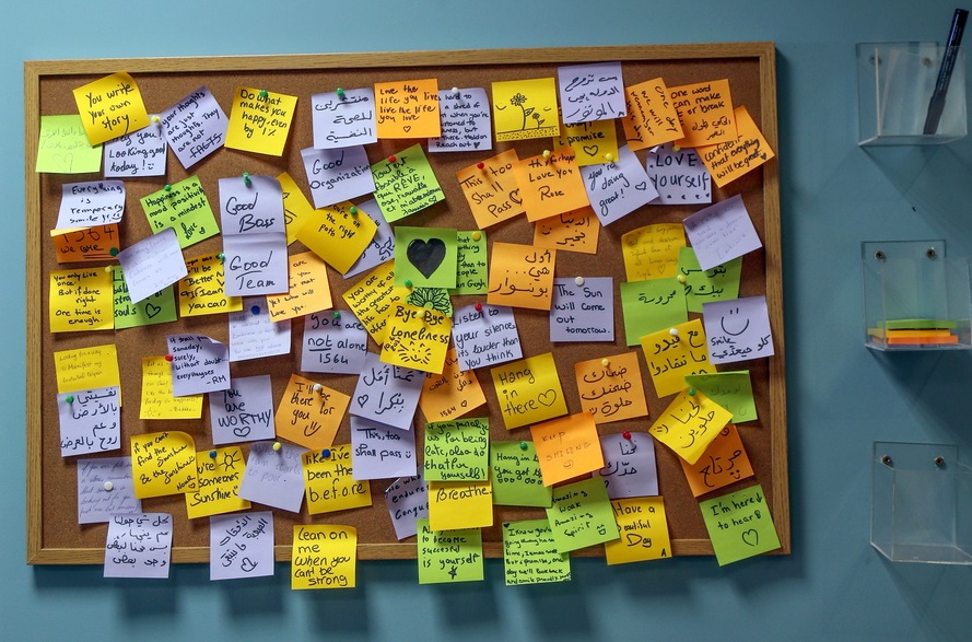 Βηρυτός. Πίνακας ανακοινώσεων της ΜΚΟ «Embrace» η οποία ενδιαφέρεται για την ψυχική υγεία των Λιβανέζων που έζησαν τον περσινό εφιάλτη της καταστροφικής έκρηξης στο λιμάνι
