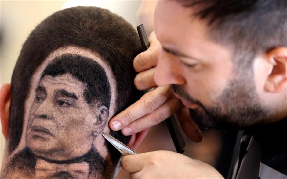 Δευτέρα, 2 Ιουλίου, Σερβία. Ο Μάριο Χβάλα, επαγγελματίας κομμωτής δουλεύει το κούρεμα ενός πελάτη του ο οποίος ζήτησε να σχηματίσει στο κεφάλι του τη μορφή του Ντιέγκο Μαραντόνα