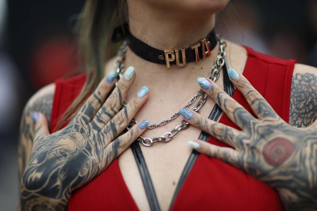Κοντινό, εξυπακούεται, καρέ από διαδήλωση μεξικανών ιεροδούλων οι οποίες απαίτησαν ένσημα, περίθαλψη και ασφάλεια στη δουλειά τους