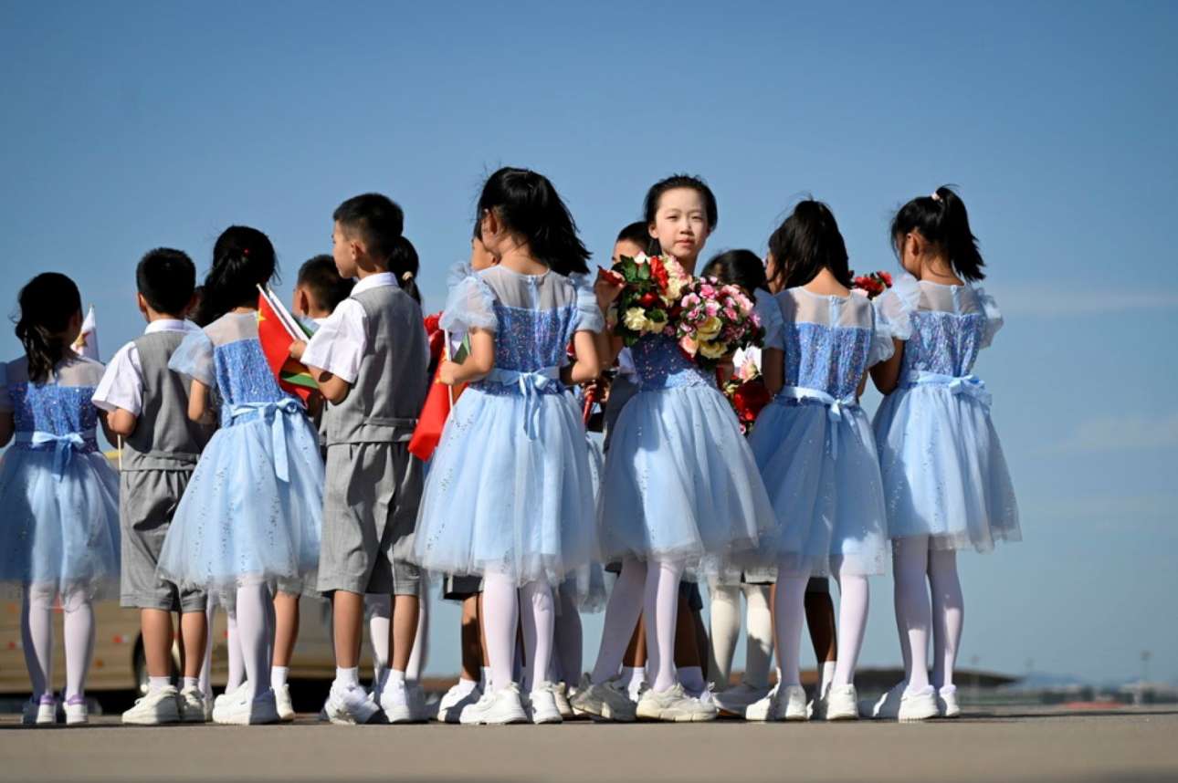Στο αεροδρόμιο του Πεκίνου αγόρια και κορίτσια του Δημοτικού περίμεναν με άνθη και σημαίες τον πρόεδρο της Ζιμπάμπουε – εμείς είμαστε το μέλλον, λένε με κάθε τρόπο οι Κινέζοι