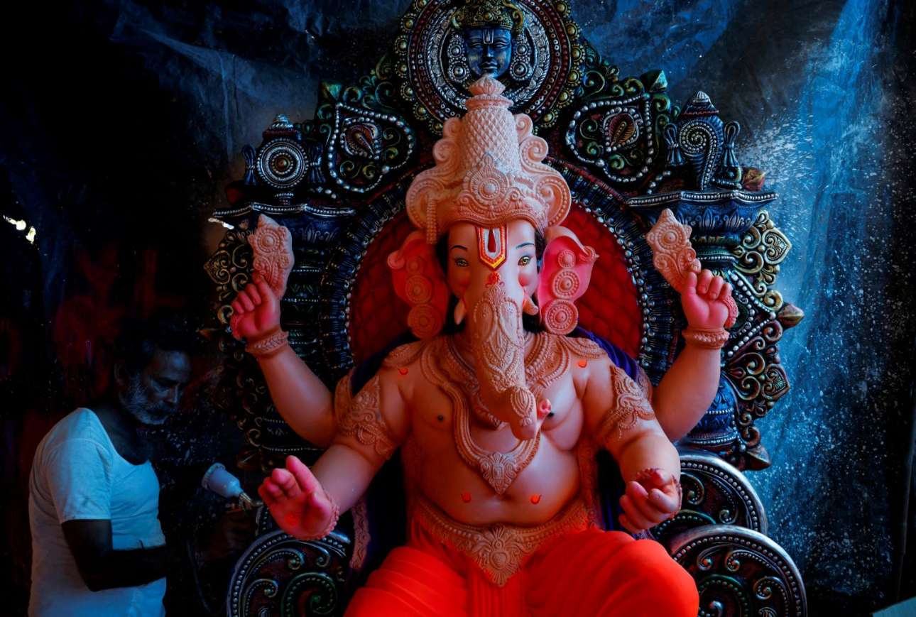 Ο «θεός της ευημερίας», ο ελέφας Γκανέσα, υπέμεινε αγόγγυστα το ρετούς του μάστορα στο ινδικό εργαστήρι. Ινδουιστικός ζωομορφισμός και μακαρισμός της ζωικής αθωότητας