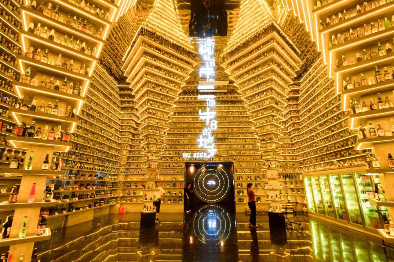 Αυτό το χρυσοποίκιλτο παλάτι είναι το «μουσείο μπίρας» των Κινέζων, όπου εκτίθενται χίλιες μάρκες από όλον τον κόσμο. Αν η μπιρίτσα τιμάται τοιουτοτρόπως, πώς πρέπει να δοξαστεί το κρασί;