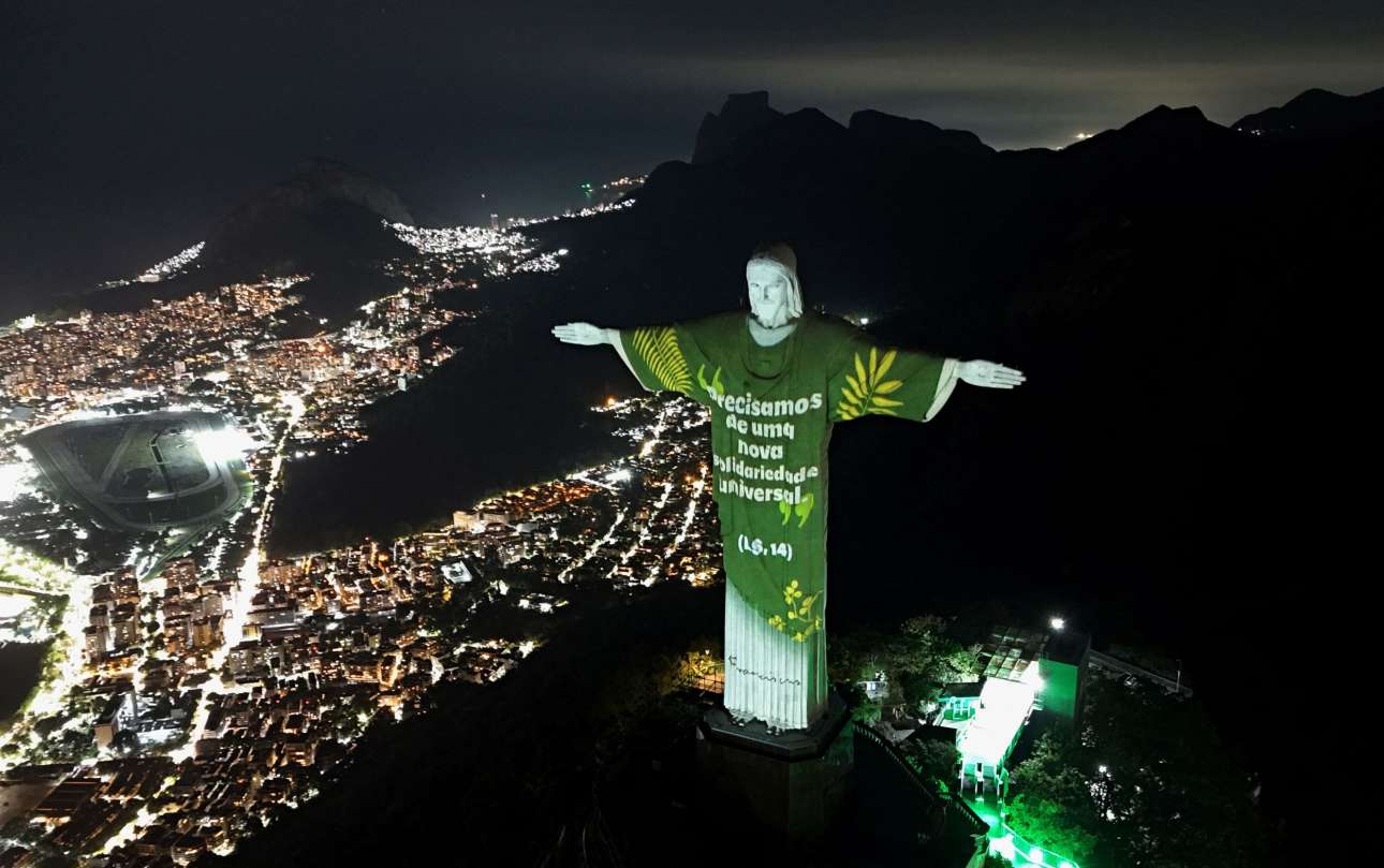 Μήνυμα του πάπα προβλήθηκε πάνω στο άγαλμα του Χριστού του Ρίο ντε Τζανέιρο, ορατό από τις φαβέλες στα πρανή του βουνού – το drone πέτυχε καλή πανοραμική λήψη