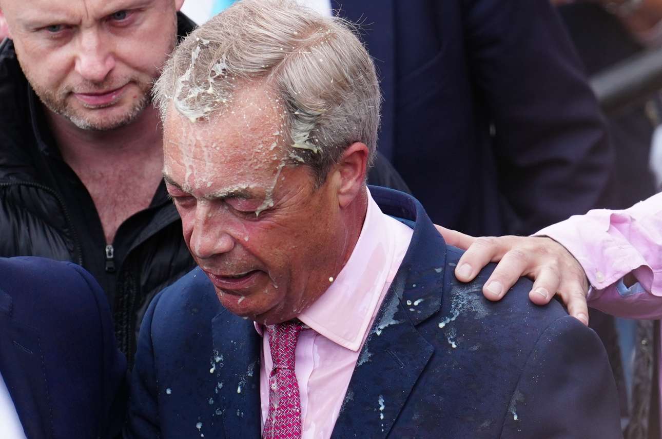 Ο Βρετανός Νάιτζελ Φάρατζ, φέρελπις πολιτικός μόλις 60 Μαΐων, συνήθως γελάει φαρδιά πλατιά στους φακούς, όμως όχι εδώ – κάποια γυναίκα της περιφέρειάς του τον μπουγέλωσε με παχύρρευστα ζουμιά