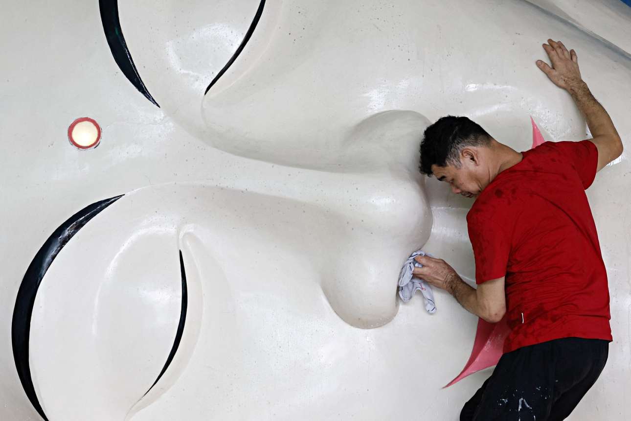 Μακαρίως κοιμώμενος ο Βούδας στον ναό της Ιάβας, σε αναγκαστική ετοιμότητα ο εργάτης που έψαχνε μεροκάματο – επελήφθη, φυσικά, και με τον ιδρώτα του έκανε το άγαλμα λαμπίκο