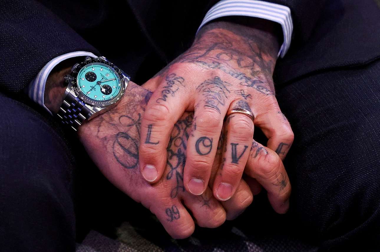 Στομωμένος νυχοκόπτης, απαίσια τατουάζ, σένιο ρολόι – τρακαρισμένα τα χέρια του πρώην μπαλαδόρου Ντέιβιντ Μπέκαμ, που εφέτος αναρριχήθηκε στο Νταβός ως «πρεσβευτής» της UNICEF