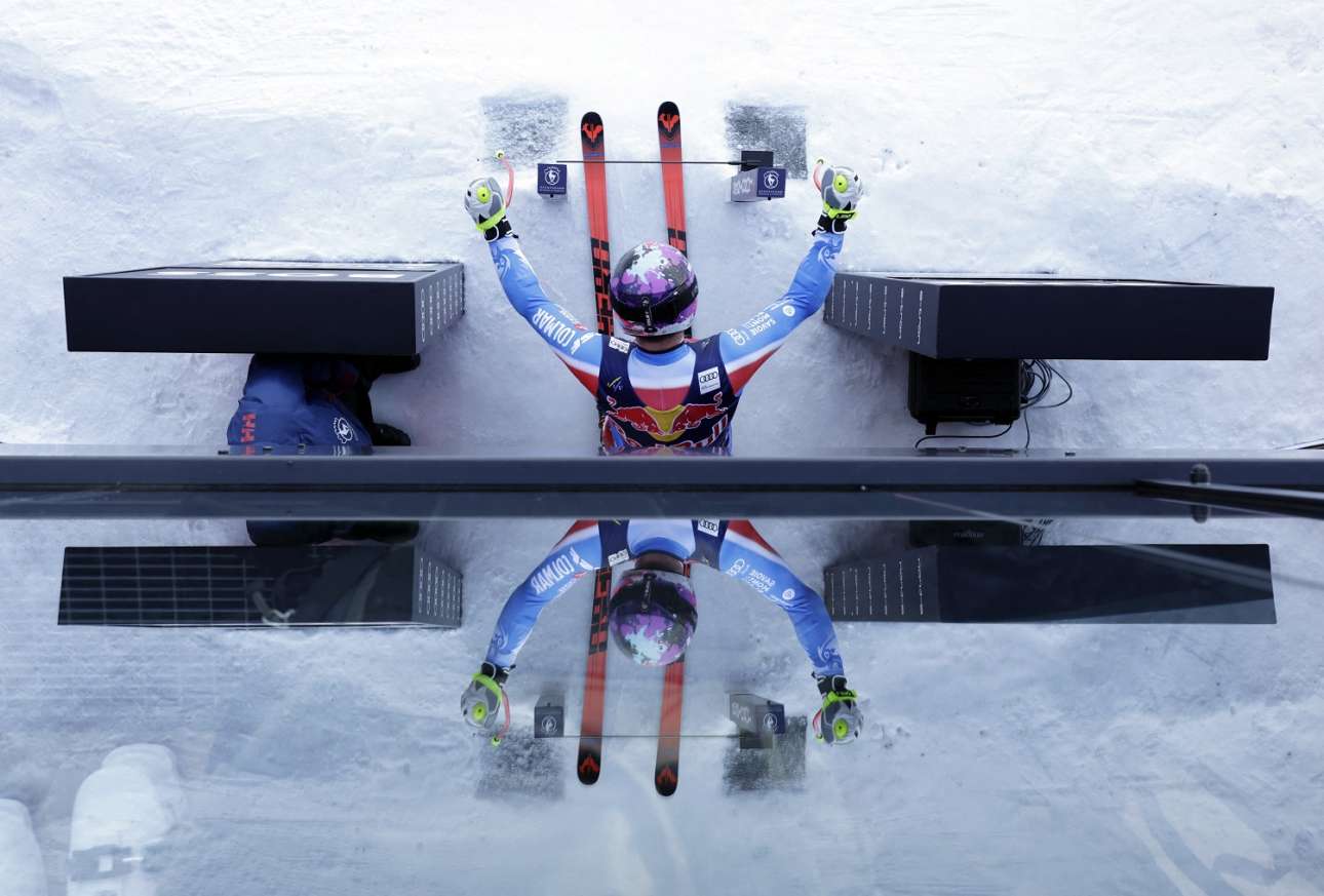 Παιχνίδι του φακού με αντανάκλαση του ειδώλου στο τζάμι. Ο ανύποπτος για το κλικ αθλητής αγωνίστηκε στην Αυστρία, στους παγκόσμιους αγώνες αλπικού σκι