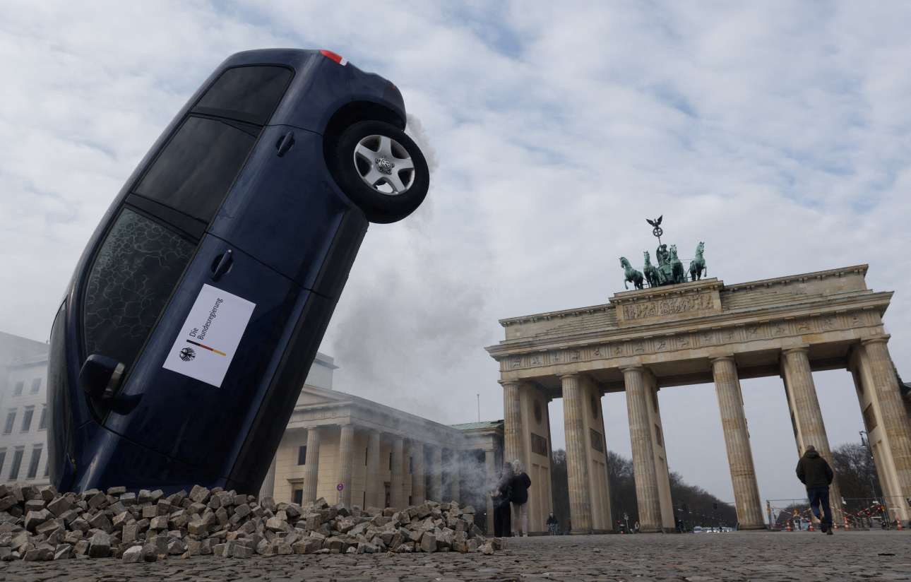 Η αρχαιοπρεπής Πύλη του Βρανδεμβούργου, το πρωσικής αισθητικής σύμβολο του Βερολίνου, έχει δει πολλά: από χιτλερικούς, Σοβιετικούς, Τείχος, Στάζι και αμερικανούς προέδρους μέχρι τουρίστες και φρικιά – τι μπορεί να πάθει τώρα από το γούστο της Greenpeace, που τσατίστηκε με τη «συντριβή του κλίματος» και φύτεψε το αμάξι στην πλατεία…