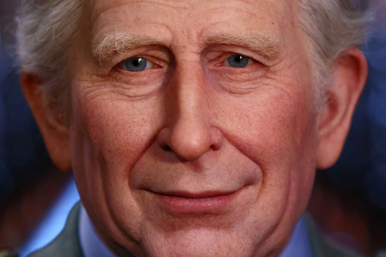 Θλιμμένος, αν όχι αμφίθυμος, δείχνει ο βασιλιάς Κάρολος Γ’ της Αγγλίας – όχι επειδή ο Ελτον Τζον δεν θα του κάνει την τιμή να τραγουδήσει στο πάρτι της στέψεως, αλλά επειδή έτσι το θέλησε ο καλλιτέχνης του παρισινού μουσείου Grevin όπου εκτίθενται κέρινα ομοιώματα