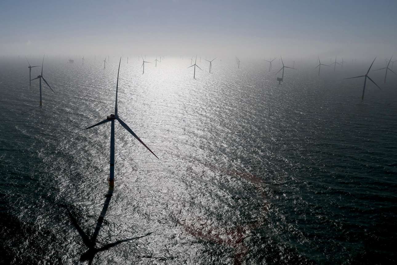 Ολοκαίνουργο γερμανικό αιολικό πάρκο στα νησιά Χέλγκολαντ της Βόρειας Θάλασσας, βορειοδυτικά του Αμβούργου – εικόνα ακατάλληλη για ρομαντικούς εραστές των γαλάζιων πόντων