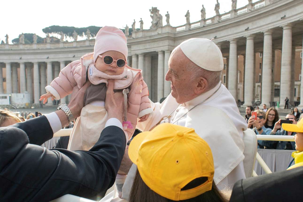 Η φινέτσα έχει όρια – το ξέρουν καλύτερα απ’ όλους οι Ιταλοί, όμως δεν μπορούν να συγκρατηθούν: για να παρουσιαστεί στον πάπα, το θηλυκό μωρό έπρεπε οπωσδήποτε να φοράει και γυαλιά ηλίου ασορτί με το ροζ σύμπαν του (σαλιάρα, μπουφάν, σκουφάκι κ.λπ.) όπου προς το παρόν ζει και βασιλεύει μακαρίως…