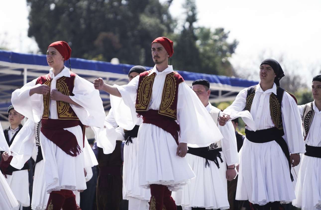 Κλεφτόπουλα της Αθήνας ροβολούν λεβέντικα τη λεωφόρο Αμαλίας – στιγμιότυπο από τη μαθητική παρέλαση της 24ης Μαρτίου για την επέτειο της Παλιγγενεσίας