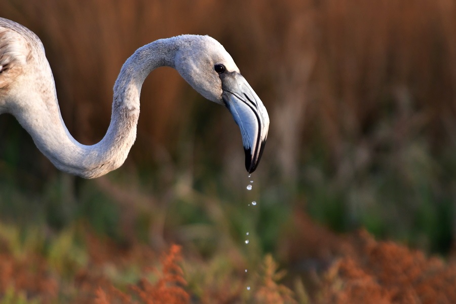 Το φλαμίνγκο σε αυτό το στιγμιότυπο δείχνει πολύ σοβαρό, εντελώς αδιάφορο για το παρείσακτο «κλικ». Και ο λόγος της προσήλωσής του είναι απλός: ψάχνει το γεύμα του στον υδροβιότοπο της Νέας Κίου, νιώθοντας ότι δεν γίνεται να παίζεις με κάποια πράγματα