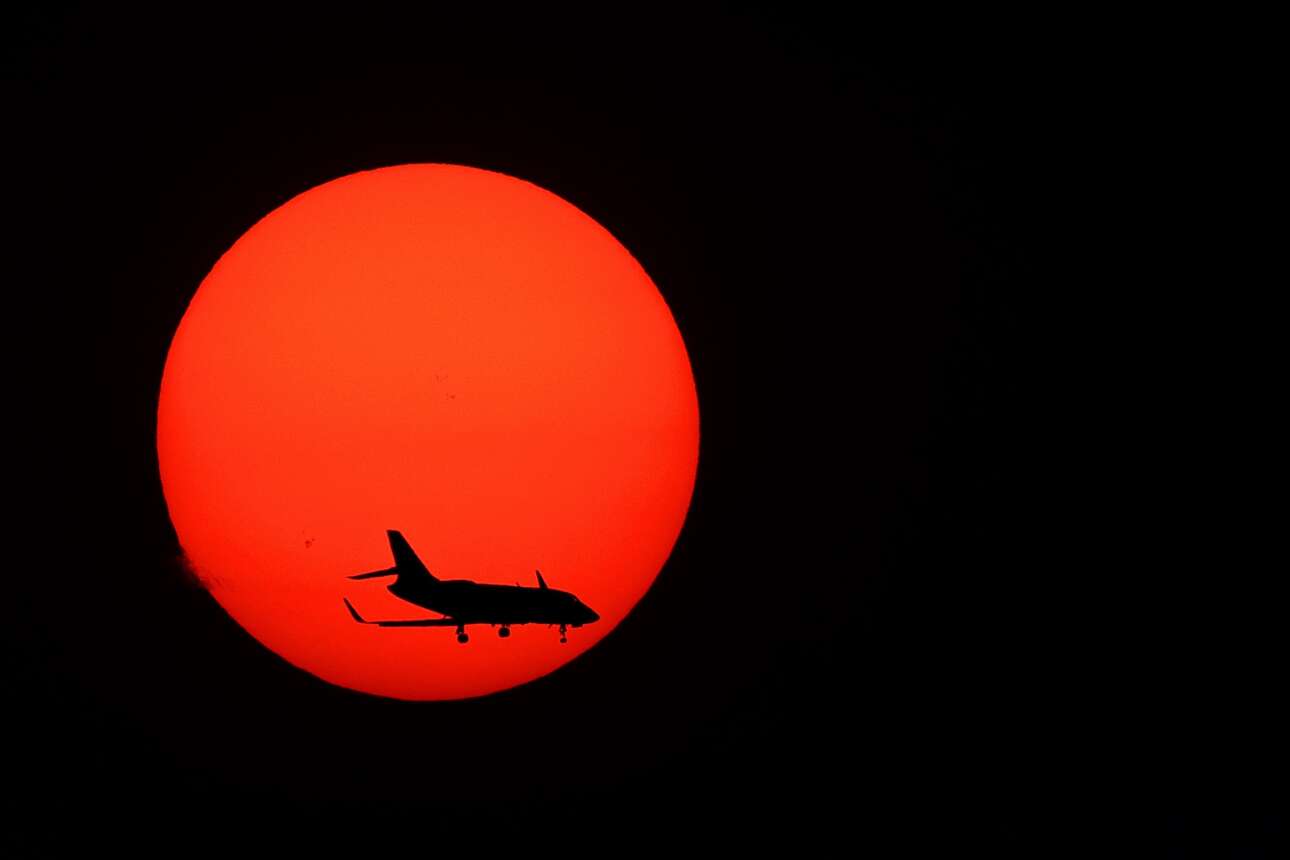 Το αεροπλάνο επιχειρεί κάθοδο στο αεροδρόμιο του Λονγκ Μπιτς, στην Καλιφόρνια, όμως συλλαμβάνεται από τον δύοντα ήλιο που το φυλακίζει στον πορτοκαλί κύκλο του. Ετσι «παγωμένη», αν και φλογερή, η στιγμή είναι ποιητική