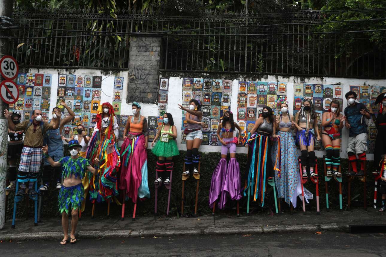 Εξαιτίας της κορονοϊκής μετάλλαξης «Ομικρον» αναβλήθηκαν τα καρναβαλικά πανηγύρια στο Ρίο, έτσι οι ξυλοπόδαροι και οι ξυλοπόδαρες του ενσταντανέ απάγκιασαν στον τοίχο φορώντας τις υγειονομικές μάσκες τους: είναι η δεύτερη κατά σειράν φορά που παθαίνουν τέτοιο κάζο οι Βραζιλιάνοι – κάλλιο να διασύρονται στο Μουντιάλ (που λέει ο λόγος)