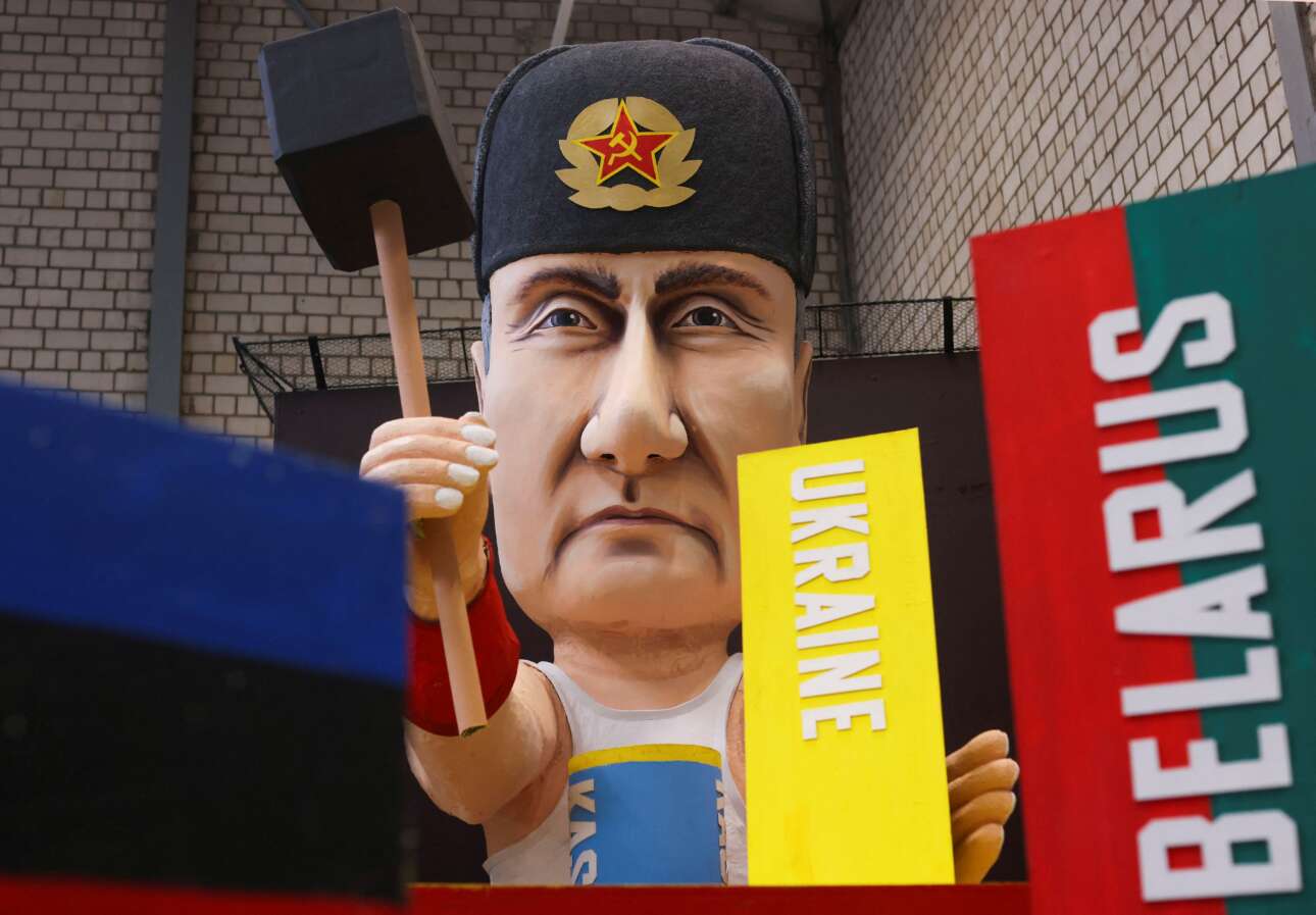 Αυτήν την καρναβαλική κούκλα αφιέρωσαν οι Γερμανοί στον Πούτιν στις 22 του μήνα: την έστησαν σε άρμα (όχι δρεπανηφόρο), με σκοπό να την περιφέρουν στο γήπεδο της Κολωνίας: πέτυχαν το αυστηρό ύφος και την αινιγματική έκφραση, αλλά μπερδεύτηκαν με τα διπλά σφυριά και το μονό δρεπάνι – δεν πειράζει, έτσι έδωσαν δουλειά σε «γεωπολιτικούς αναλυτές»