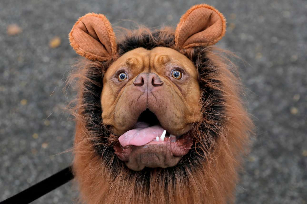 Το σκυλί αυτό «ποζάρει» ντυμένο λιοντάρι – το μασκάρεψε το αφεντικό του που το πήγε στην παρέλαση σκυλιών με την επωνυμία Halloween Dog Parade, στο Μανχάταν