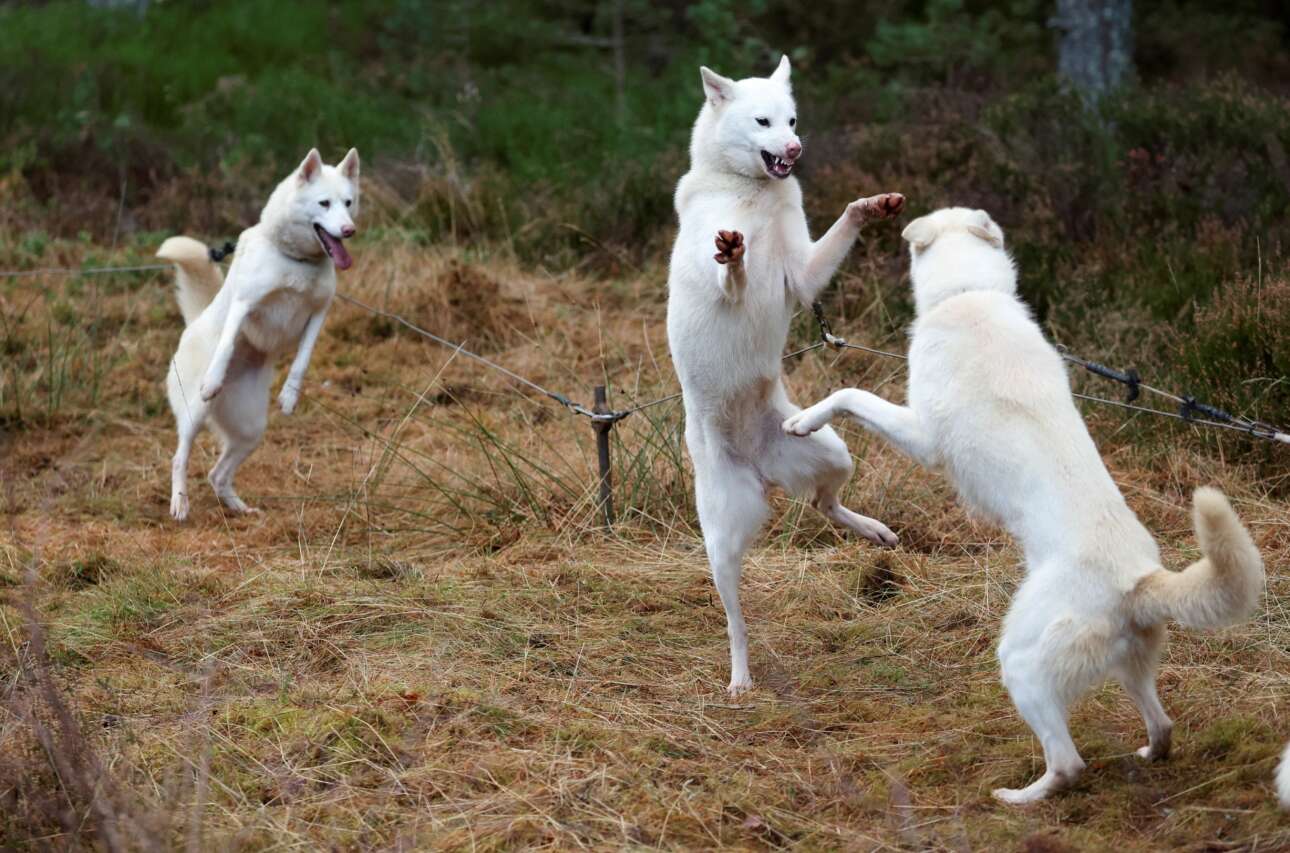 Ο χορός των δεμένων σκυλιών ράτσας χάσκι: σκηνή από το χωράφι όπου τα έχουν μαντρωμένα και τα προπονούν οι σκωτσέζοι ιδιοκτήτες τους με σκοπό τη συμμετοχή τους στο ετήσιο τουρνουά Aviemore Sled Dog