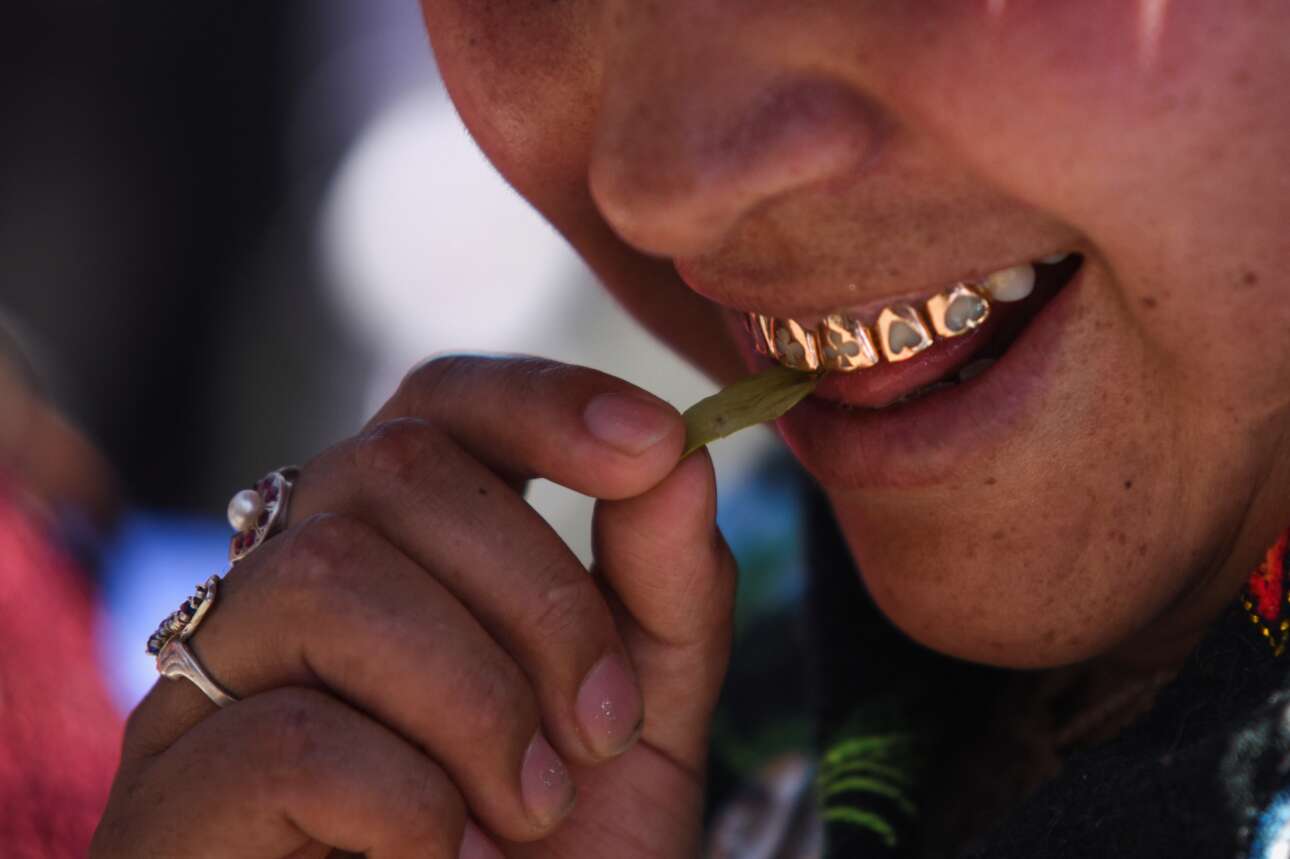 Βουλευτίνα των ιθαγενών Βολιβιανών, η κυρία Βερόνικα Τσάλκο, μασάει φύλλα κόκας στο πλαίσιο σχετικής παραδοσιακής γιορτής – καρέ από τη Λα Παζ