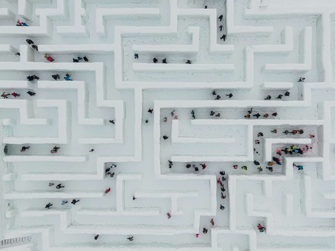 Αεροφωτογραφία του λαβυρίνθου του χειμερινού θεματικού πάρκου Snowlandia, στην περιοχή Ζακοπάνε της Πολωνίας, το οποίο εφέτος επαναλειτουργεί έπειτα από το κορονοϊκό lockdown