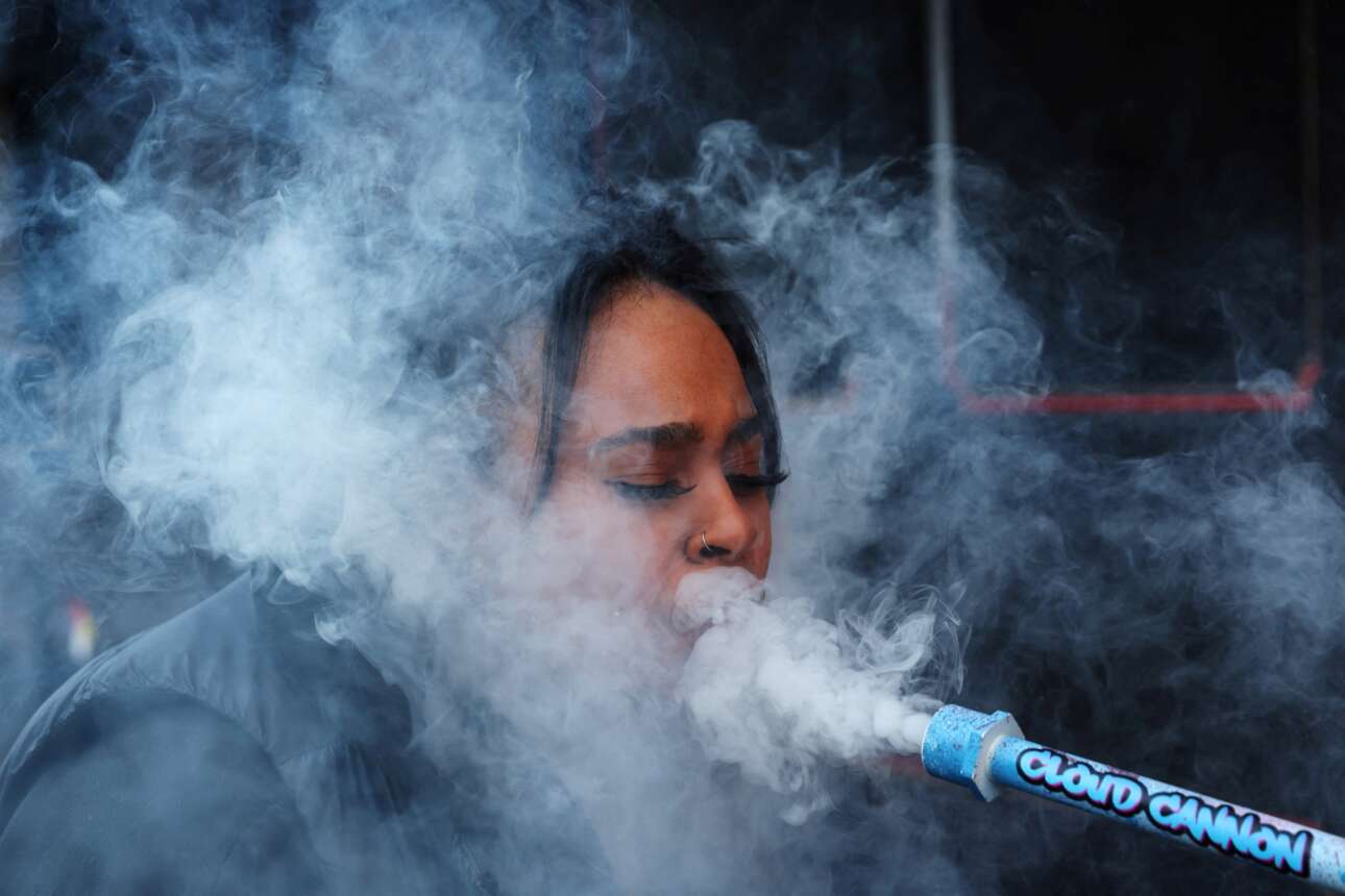 Αυτή η Νεοϋορκέζα ρουφάει απολαυστικά, με κλειστά μάτια, τον καπνό της μαριχουάνας που της πετάει κατάμουτρα (όχι για θεραπευτικούς λόγους) ένα σχετικό «κανόνι» σε αδειοδοτημένο για αυτή τη δουλειά μαγαζί