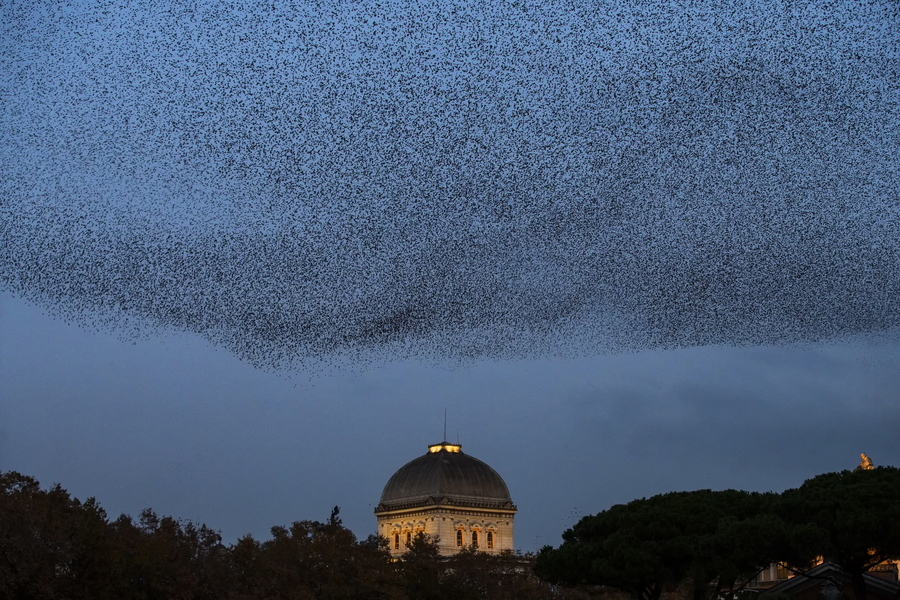 Σμήνος από ψαρόνια μαυρίζει τον ρωμαϊκό ουρανό ακριβώς πάνω από τη συναγωγή της Αιώνιας Πόλης